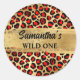 Red and Gold Foil Leopard Wild One Classic Round Sticker