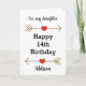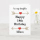 A personalized 14th birthday card for daughter, which you can easily personalize the front of the card with her name. Features glittery arrows with hearts. Inside this 14th birthday daughter reads a heartfelt message, which can be easily personalized. This would make a unique birthday keepsake for her.