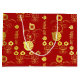 Gold ornaments with floral and hearts on a red background. Three different lettering styles of Merry Christmas next to the ornaments.