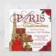 Paris Quinceanera invitation with beautiful gold Eiffel Tower, elegant Paris gift packages, gold glitter high heel shoes and fancy red Paris script on a rich black and red rose background. This beautiful Paris Quinceanera invitation is easily customised for your event by simply adding your details in the font style and colour, and wording of your choice. This is a printed design with no real diamonds, jewels, glitter, etc.