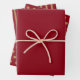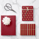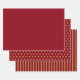 Three sheet wrapping paper in coordinating red and gold Christmas colours. Sheet 1 is a solid colour, sheet 2 is a polka dot pattern, and sheet 3 is a striped pattern. Contact us for help with customisation or to request matching or coordinating products.