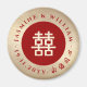 Minimalist simple red/faux gold foil round/circle double happiness on a faux gold foil/red background with auspicious chinese wishes, chinese wedding party favour gift magnet.