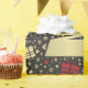 Wrap your holiday gifts with this Christmas wrapping paper featuring red and golden Christmas tree, Santa hat, Christmas gifts, golden snowflakes and stars. Your presents will look extra jolly under the Christmas tree.