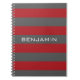 Red and Gray Rugby Stripes with Custom Name Notebook