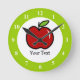 Red and green apple wall clock for school teachers. Cute gift idea for kindergarten class room. PErsonalized text. Education theme design.