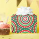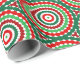 A fun red and green geometric design featuring circles set within circles. This Christmas wrapping paper is suitable for a wide range of gift recipients.
