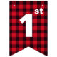 Red and Green Buffalo Plaid 1st Birthday Party Bunting Flags.