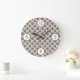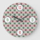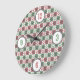 Red and Green Chequered Dog Paw Print Pattern Large Clock
