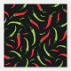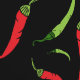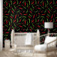 Hot chilli pepper patterned wallpaper printed with bright red and green cayenne chilli peppers on black
