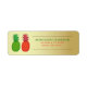 These modern, unique holiday return address labels feature red and green pineapple images on a faux gold foil background. PLEASE NOTE: the gold is printed on and is not actual gold foil.