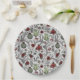 These festive country Christmas paper plates feature a hand-drawn country Western pattern with reindeer skulls and antlers, red roses, cactus plants and poinsettias in black ink against an elegant soft grey background, capturing the spirit of Christmas.