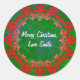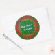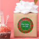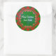 A holiday theme forest green background with a blue and green pine pattern created from a vintage etching. Add your own personal message to this sticker!