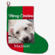 Red and Green Cute Dog Photo Holiday Large Christmas Stocking