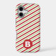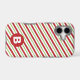 Red and green diagonal stripes with optional red monogrammed circle. (custom color)