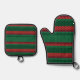 Red and Green Faux Knit Stripes Oven Mitt & Pot Holder Set
