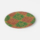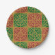 Paper plates with an elegant red and green Christmas art pattern with a vintage gothic, fleur-de-lis pattern restored from antique tiles.