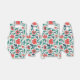 This is a colourful watercolor vintage floral pattern with red flowers and green leaves on a white background.