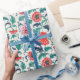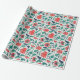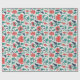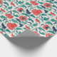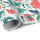 This is a colourful watercolor vintage floral pattern with red flowers and green leaves on a white background.