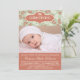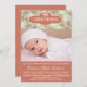 A photo baptism of christening invitation perfect for Christmas with red and green floral wallpaper accents.
