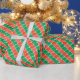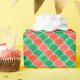 Add a festive touch to your Christmas presents with custom wrapping paper featuring a reproduction of a hand-painted design in gouache paint. Rows of alternating red and green scales with white borders form diagonals of colour across the interlocking geometric pattern. Paint strokes are visible in the red and green fan shapes and show variations in the colours.