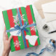 Red and Green Holiday Mittens and Christmas Hats and Snowflakes Wrapping Paper