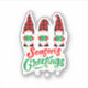 Red and Green Illustration Gnomes Merry Christmas Sticker