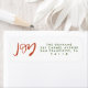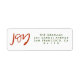 A hand-lettered "JOY" in festive red and green on white adorns this festive return address label.