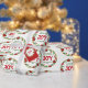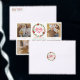 Vintage classic elegant poinsettia Christmas wreath in gold, green and red with family name to personalise with the current year and tender message of peace, love, believe and joy.