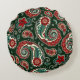 Red and Green Paisley Round Pillow