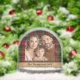 Personalizable Christmas design with an arched photo template set over a festive red and green plaid pattern. The design includes a personalizable text area ideal for a family name and year.