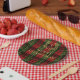 Destei's festive red and green plaid pattern together with a laurel wreath silhouette with two personalizable text areas including a monogram initial and space for a name. In the middle there is a large text that now reads: "Merry Christmas". This is a classic yet elegant and personalizable design for the Holiday season.