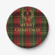 Red And Green Plaid Family Name Christmas Paper Plate