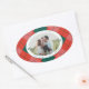 Red and Green Plaid Family Photo Merry Christmas Oval Sticker