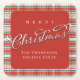 Red and Green Plaid Merry Christmas Custom Square Paper Coaster