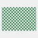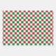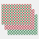 A set of bright red and green check pattern retro Christmas wrapping sheets, with one red, one green, and one red and green sheet.