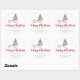 This modern holiday sticker features a red and green ribbon Christmas tree above the words "Merry Christmas" in stylish red calligraphy script. Personalise it with your family's name in green serif font.