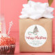 Red and Green Ribbon Tree Merry Christmas Script Classic Round Sticker
