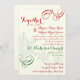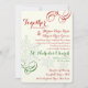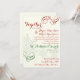 Charming and festive snowflake, typography style wedding invitation in green and red, perfect for Christmas or winter holiday weddings.