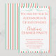 A festive, contemporary Red and Green Stripe Christmas Dinner Party Invitation with elegant script font. Perfect for a holiday dinner party, this stylish design is great for inviting your guests to your festive Christmas gathering.