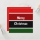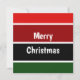 A red and green horizontal striped pattern and the text: Merry Christmas. You can click personalise and edit the text. Write 2 words in one line and they will appear on two rows.