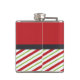 Red And Green Stripes With A Monogram In A Circle Hip Flask