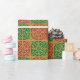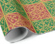 Red and Green Tile Art on Gold Pattern Wrapping Paper