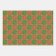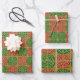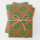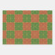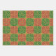 Red and Green Tile Art on Gold Pattern Wrapping Paper Sheet