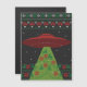This funny UFO Card features a UFO sucking up the ugly Xmas sweater design into its tractor beam. Besides the large red UFO, this Card features traditional ugly sweater details like snowflakes, leaping deer, and poinsettias, all in a cross-stitch look.