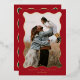 Celebrate the season with this classic holiday photo card featuring a bold red background, deep green accent, and a shimmering gold wavy frame. The front showcases your family photo with “Happy Holidays” in elegant gold foil typography, while the back includes a heartfelt holiday greeting. Perfect for sending warm wishes to family and friends, this traditional yet modern card design captures the festive spirit with timeless Christmas colours and a sophisticated frame style.