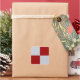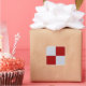 Two red rectangles and two grey rectangles form a chequered pattern in this clean graphic design.
