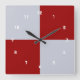 Two red rectangles and two grey rectangles form a chequered pattern in this clean graphic design.