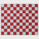 Two red rectangles and two grey rectangles form a chequered pattern in this clean graphic design.