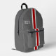 Red and Grey Stripe College Colours Monogram Printed Backpack