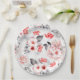 Red and Grey Watercolor Flowers Bridal Shower Paper Plate